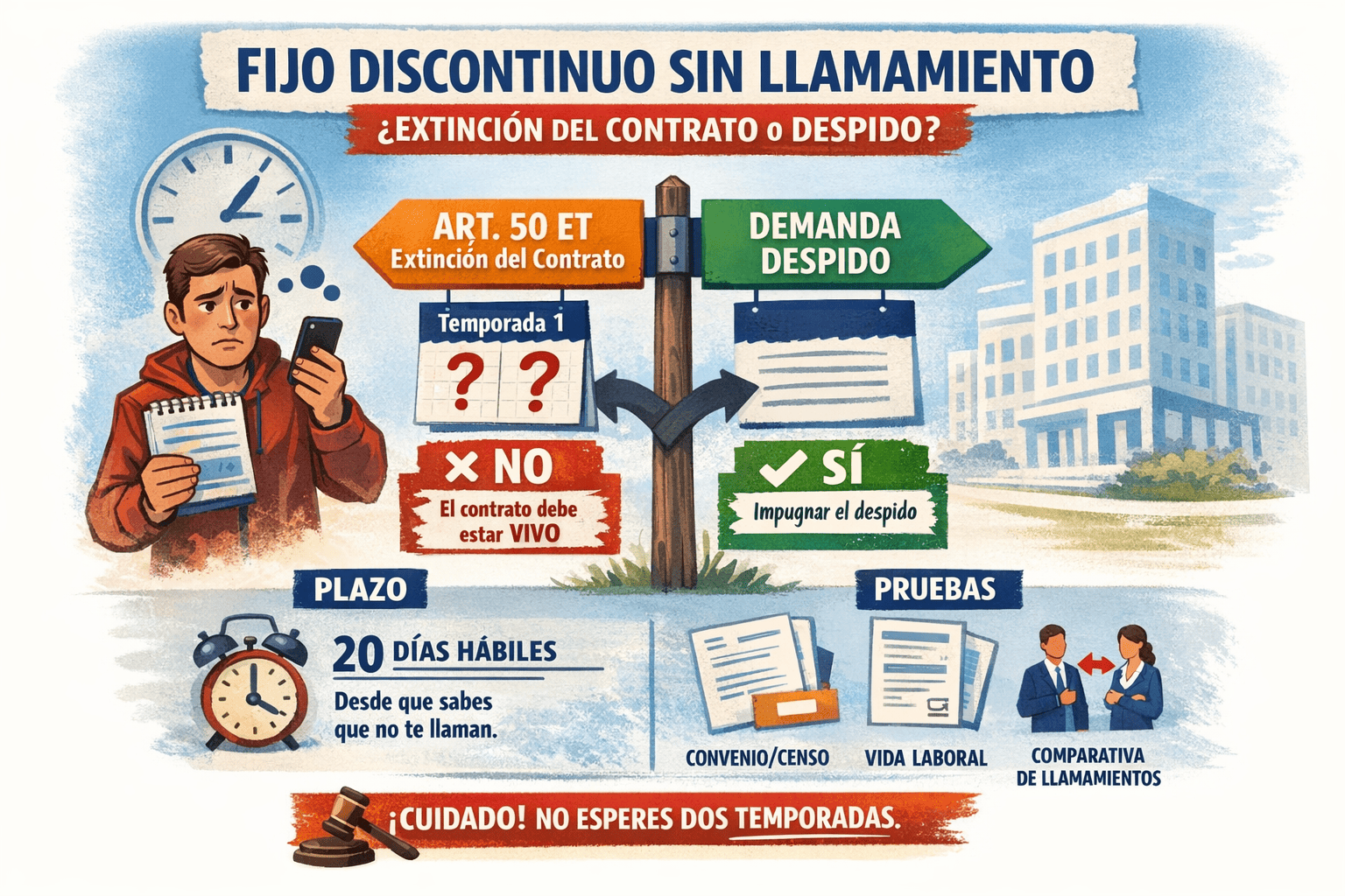 3) ¿Y si no me llaman en una o dos temporadas? El error típico: presentar “extinción” cuando ya hay despido